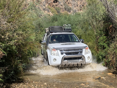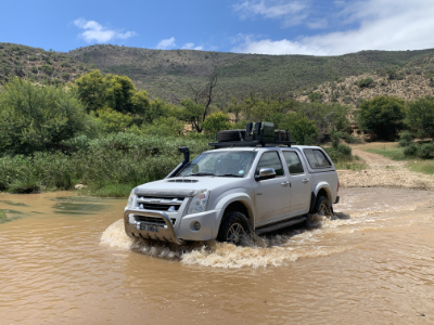Our 4×4 vehicle is permanently connected to the leading guide via 2-way transceivers, and is equipped with a 12V fridge / freezer.