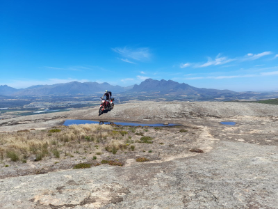 The route leading to Paarl, after a short ride on the N1, follows gravel farm roads and countryside tar roads. The climb to the Paarl Rocks Nature Reserve is done via a good gravel road, and the trail around the Paarl rocks doesn’t offer too many difficulties. On the way back to Bellville, minor tar roads alternate with gravel roads.